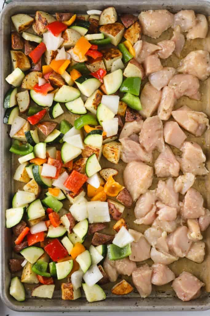 This sheet pan chicken recipe is a quick and easy way to get a dinner on the table that everyone loves. Serve with a side of pasta, potatoes, or rice and enjoy!