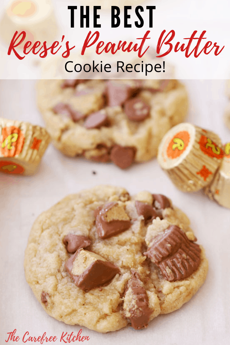 These Reese’s cookies are the ultimate peanut butter lover’s dream. They begin with my favorite chewy chocolate chip cookies recipe, but rather than chocolate chips I stuff them full of Reese’s Peanut Butter Cups.